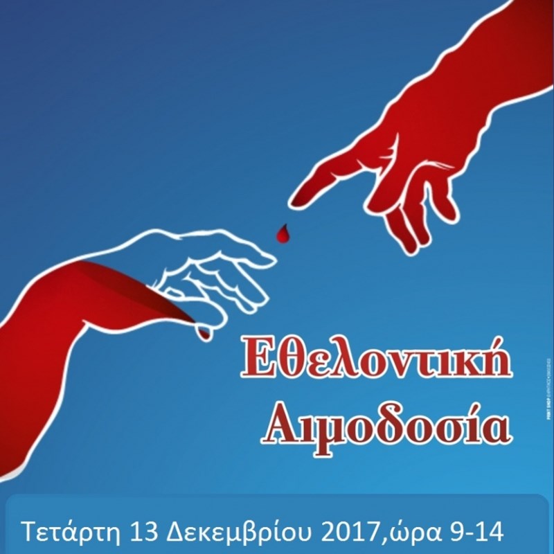 Συναδέλφισσες, συνάδελφοι Σας γνωρίζουμε ότι η Ένωση μας θα πραγματοποιήσει εθελοντική αιμοδοσία την Τετάρτη 13 Δεκεμβρίου 2017, από τις 9 έως τις ...